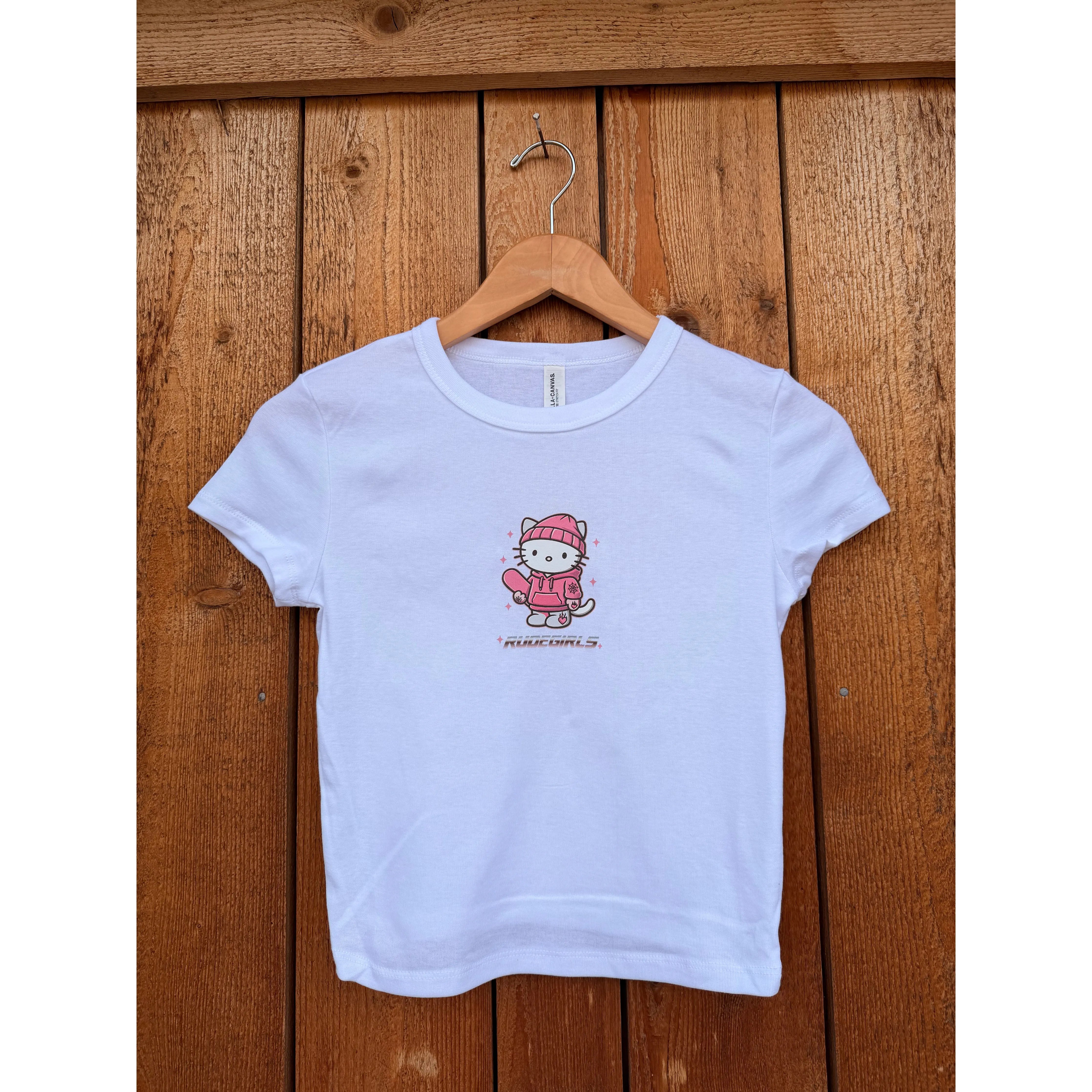 RUDE GIRLS RUDE KITTY BABY TEE - WHITE / L is backordered and will ship as soon as it is back in stock.