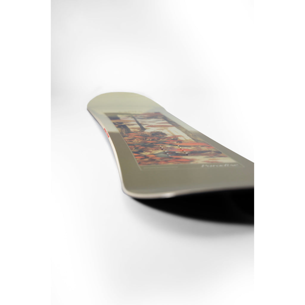 These perfectly balanced all-terrain freeride boards are stable and supportive – yet forgiving and easy to ride at the same time. Featuring camber underfoot for controlled turns and a rockered nose and tail that floats in powder, the Paradise is the perfect board to cruise side-country powder in the morning and laps through the park in the afternoon.